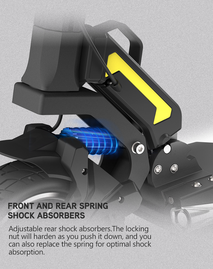 Autre point fort de cette Dualtron Togo : le confort. En effet, vous aimerez particulièrement les suspensions avant et arrière à ressort. Ce système de suspension permet d’absorber toutes les aspérités de la route et ainsi de rouler sans désagrément. Vous apprécierez cette suspension en ville, notamment sur les routes pavées.